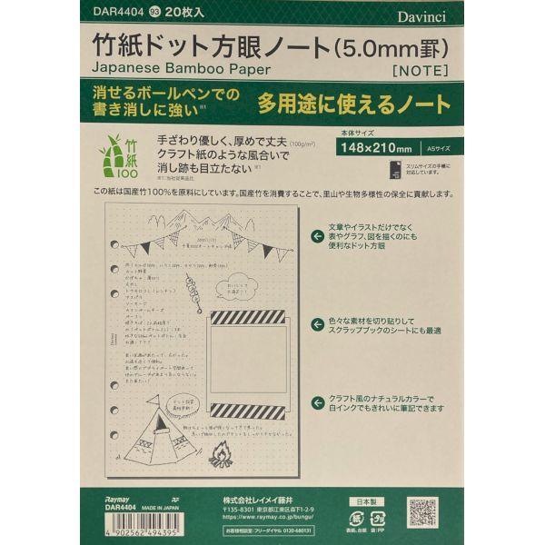 レイメイ藤井 DAR4404 【5個入】 ダ・ヴィンチリフィル 竹紙ドット方眼ノート A5サイズ