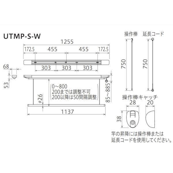 川口技研 UTMP-S-W 室内用昇降式ホスクリーン操作棒/延長コードタイプ UTMP型 ショートサイズ 1255mm UTMPSW