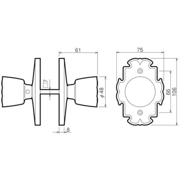 ●材質:(ノブ・座)亜鉛ダイカスト、(ラッチ本体)亜鉛ダイカスト