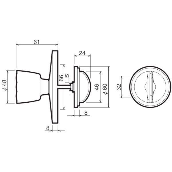 ●材質:(ノブ・座)亜鉛ダイカスト、(ラッチ本体)亜鉛ダイカスト