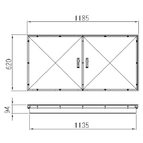 【商品説明】●特徴:床下開口ハッチ汎用タイプです。中央の天板受け中桟が無いため2枚の天板を外した際に大開口でご使用頂けます。厚天板仕様のため天板裏側の鋼製補強材が不要です。そのため床鳴り、タワミ等発生しにくい構造となっております。置き蓋式です。写真中のフロアー材は現地手配です。12mm、15mmのフロアー材(現地手配)対応商品となっております。12mmのフロアー材をご使用の場合は、調整板(製品同梱の2.5mm厚の合板)をご使用ください。クッションフロアーの場合は、総厚34.5mmになるよう現場で調整材(別途)をご用意ください。●材質内装:プリント合板(白)●枠材質:アルミ●色:ブロンズ●寸法W×D×H(mm):1185×620×94●床開口寸法W×D(mm) :1173×608●製品重量(kg):12●注意事項:※4t車以上が進入可能な場所でなければ、お届けできません。※無人の事務所などへのお届けや工事現場納品は不可となります。※1階での引き渡しとなります(上層階への配送は対応できません)。※この商品は企業様向けのみの販売となります。個人様宅への配達はできません。※大型製品ございます製品搬入経路、荷受人様ご確認お願います。※大型商品の為一部の地域にてご発送不可の場合もございます。収納庫 大型収納庫 収納システム 隠し収納 収納 床収納 床下収納