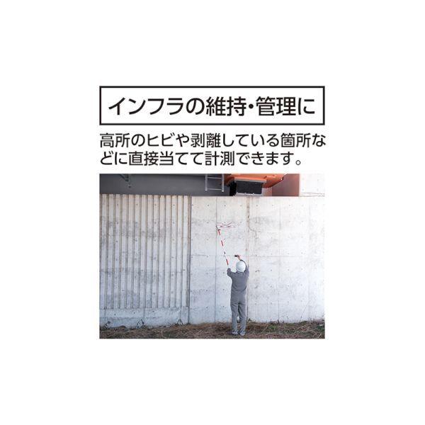 ●ポールに標尺が付いているため、高所のヒビや剥離している箇所などに直接当てて計測できます。