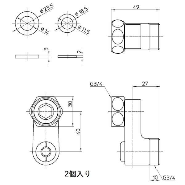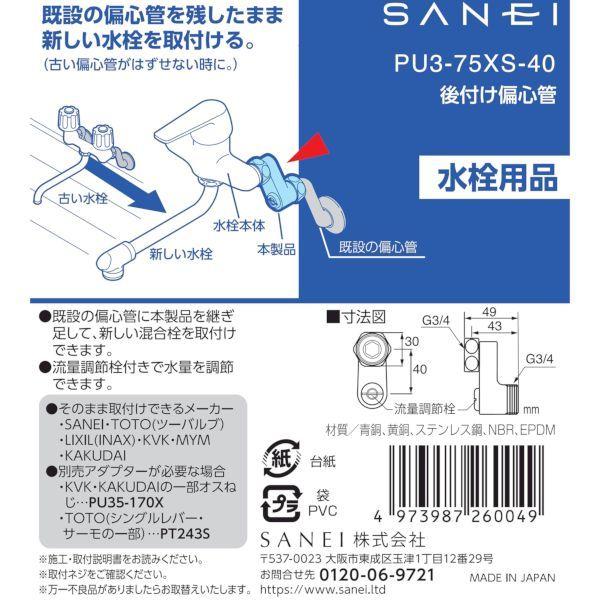 【商品説明】●=既設の偏心管が外れないときに=混合栓を変えようと偏心管に手をつけたものの、「壁から全くびくとも動かない。」、「台などに当たって偏心管をまわすことができない。」そんなお悩みを解決します。●=設置場所=既設の偏心管に本製品を継ぎ足して、新しい混合栓を取り付けることが出来ます。●=流水調節付き=水量を調整したり、水を止めたりできます。●1袋に2個入っています。【仕様】●そのまま取り付け可能メーカー:SANEI・TOTO(ツーバルブ)・LIXIL(INAX)・KVK・MYM・KAKUDAI ●別売りアダプターが必要なメーカー:KAKUDAIとKVK一部のオスねじ・・・PU35-170X TOTOのシングルレバーやサーモの一部・・・PT243S【材質】●青銅・黄銅