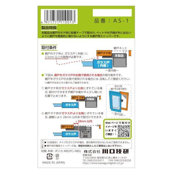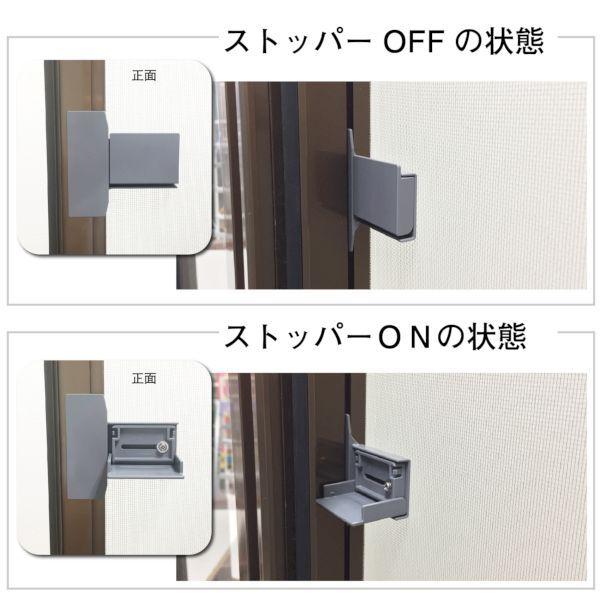 【商品説明】●本製品は網戸のタテ枠に粘着テープで取付け、ペットやお子様が外に出ないように網戸を簡易的に開かないようにする網戸用ストッパーです。【商品用途】●網戸用のストッパーに!【注意】●大型取手タイプのガラス戸の場合、取付条件が合わないためご使用できません。●網戸用の簡易ストッパーの為、防犯を目的としたご使用はしないで下さい。【材質】●ポリカABS(PC/ABS)脱出防止