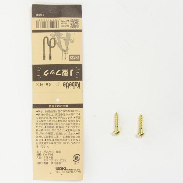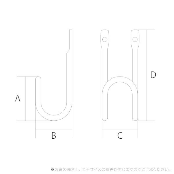 【商品説明】●壁面を演出する収納金具「Kabette(カベッテ)」のJ型フックです。● おしゃれな収納を作る事が出来ます。● 線材を利用した金具なので、見た目もスッキリ!シンプルなデザインでお部屋にマッチします。● 帽子などの小物をかける際に便利です。● 壁にビスで固定してお使いください。【商品用途】●お部屋、玄関、キッチン、洗面所など、オシャレな収納空間を作る事ができます。【注意】●平面でご使用ください。金具を取り付ける壁が重荷に耐えられるかご確認ください。● 防水、防滴処理は施されておりません。素材の特性上、高温多湿や水濡れにより変色や腐食、サビが発生します。● 危険物、貴重品、こわれやすい物は収納しないでください。● 誤使用による事故には、一切責任を負いかねます。● 製造の都合上、若干サイズの誤差が生じますのでご了承ください。【カラー】●真鍮【商品サイズ】●丸棒太さ:φ4mm●穴サイズ:φ4mm●寸法A:36mm●寸法B:28mm●寸法C:26mm●寸法D:65mm【材質】●スチール・焼付塗装【付属品】●木ネジ(3.5×16)×2本壁面収納 ウォールデコ スタイリッシュ 壁掛け
