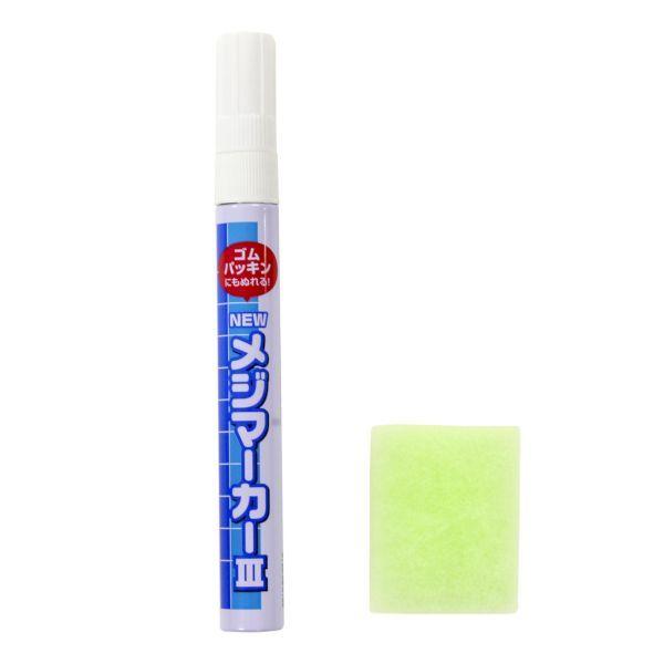 【商品説明】●お風呂場、トイレ、洗面台、キッチン等のタイルメジ、ゴムパッキンの汚れかくしに。(シリコーン部分には使用できません)●カビ取り剤でも落とし切れない汚れやカビを塗るだけで白くかくせます。(壁面、床面どちらもOK)●表面がツルツルしている面にはみ出した部分は付属のふきとり用イレイザーで除去することができます。(施工後1~2時間以内)●抗菌剤、防カビ剤配合でカビの発生、汚れ防止に役立ちます。●油性タイプで乾燥が早く、重ね塗りができます。(施工1時間以上経過後)●イヤなにおいが少ないアルコール系で、施工完了後、においは残りません。●硬くて細いペン先で摩耗が少なく、ピンポイントで塗ることができます。●1本で約200m使用(1回塗り)できます。(メジの状態や塗る強さ、塗布量により変わります)●乾燥後は、水に濡れても大丈夫です。(施工1時間以上経過後)●施工後は取れにくく、汚れも付きにくいのでお手入れも楽になります。【商品用途】●メジ、ゴムパッキンの汚れを塗って隠すペン【注意】●使用後は、ペン先をティッシュで拭いてからキャップをして保管してください。●シリコオーン部分には使用できません。●表面がザラザラ、凸凹している面や塗料がしみ込む面は除去することができませんのでご注意ください。●乾燥する前に湿らせた布等ですぐにふき取ってください。●施工後1時間は水がかからないようにしてください。●ペン先を押さえすぎると塗料がモレる場合があります。●防カビ及び抗菌の効果は、状況によって変わります。●施工後、洗剤やカビ取り剤などでコスリ洗い等を行うと状況によってはがれてしまう可能性があります。●長時間使用する場合は換気をしながら作業してください。●メジのカケをうめるには別売の「メジスティック」を、メジのヒビをふさぐには別売の「メジのヒビふさぎ」をご使用ください。●タイルの割れ、ヒビ補修はできません。●使用後はキャップをして必ず立てて保管してください。●幼児の手が届く所には置かないでください。●高温になる場所(例:高温の車中)に放置しないでください。●可燃性です。火気の付近で使用しないでください。【仕様】●施工量:約200m(幅約3mm)/1回塗り(メジの状態や塗る強さ、塗布量により変わります)【内容量】●9g【材質】●合成樹脂、アルコール系溶剤、顔料、防カビ剤、抗菌剤、添加剤【付属品】●ふきとり用イレイザーペイント マーカー ペン型
