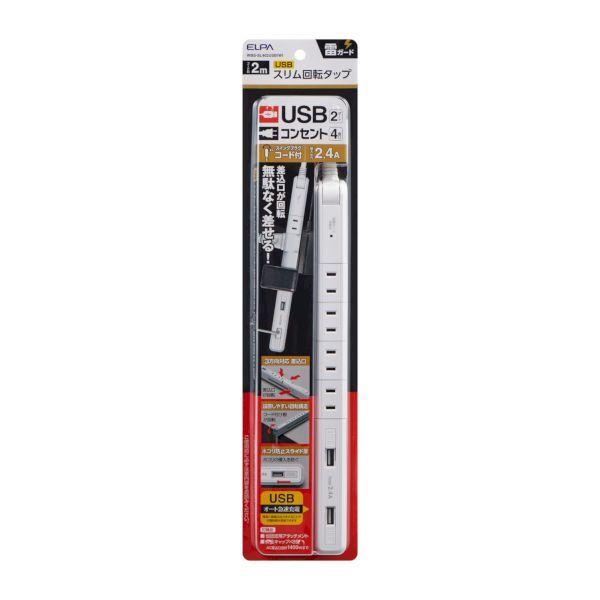朝日電器 ELPA WBS-SL402USB(W) 4P2mスリム回転USBタップ WBSSL402USB(W)