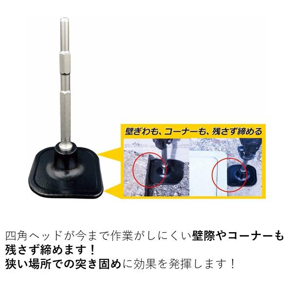 ●四角ヘッドが今まで作業がしにくい壁際やコーナーも残さず締めます!狭い場所での突き固めに効果を発揮します!