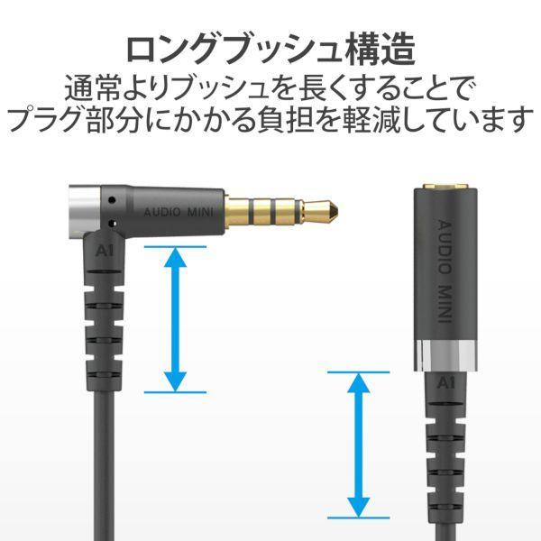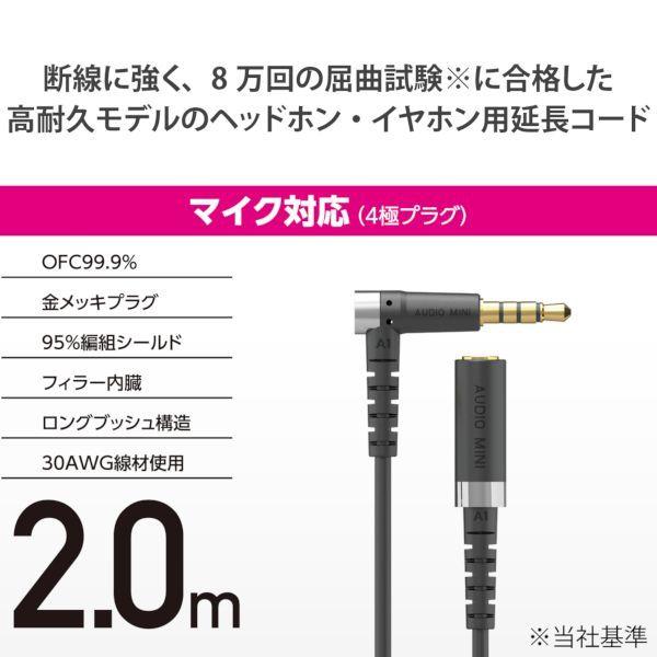 エレコム ELECOM EHP-35ELS4P20BK イヤホン ヘッドホン 延長コード φ3.5mm 4極 ステレオ ミニジャック to ミニプラグ