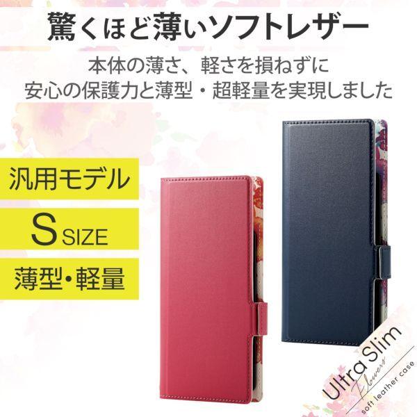 エレコム ELECOM P-04PLFUSJPND スマホケース 汎用 マルチケース Sサイズ レザー 手帳型 マグネット開閉 スライド式 ディープピ