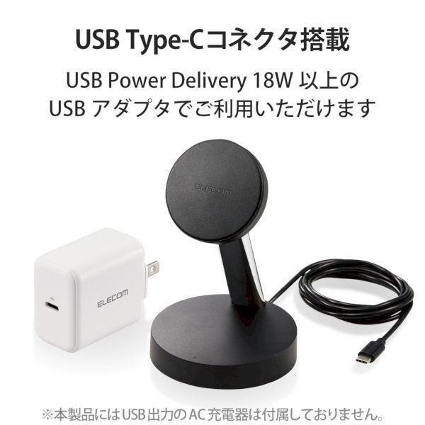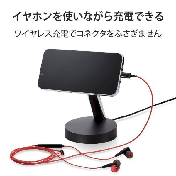 エレコム ELECOM W-MS02BK ワイヤレス充電器 7.5W マグネット式 スタンドタイプ 縦置き/横置き両対応 ケーブル一体 1.5m ブラ