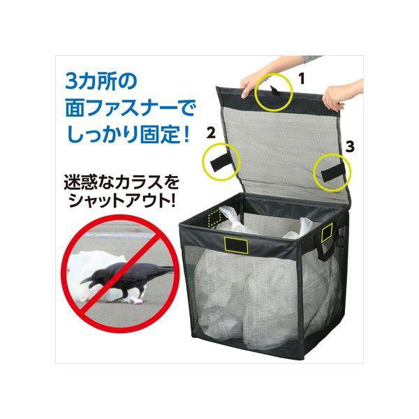 【商品説明】●カラスや野良猫からゴミを守る便利な折りたたみゴミ収集ボックス●商品サイズ(単位mm):500×500×500mm(組立時)●セット内容:本体×1●重量(g):750g●材質:ポリエステル●包装形態:OPP袋個包装●包装サイズ:500x500x30mm●生産国:中国