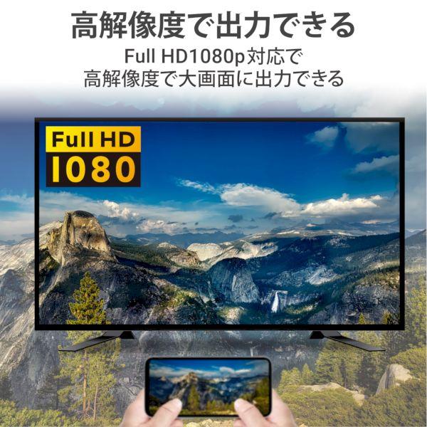 エレコムメーカーお問い合わせ:0120-898-794【商品説明】●本製品をテレビに接続することで、スマホやパソコンの映像をワイヤレスでテレビの大画面に映せます。●2パターン選べる接続方法。Wi-Fiダイレクト(Miracast)接続とアクセスポイント接続を選択できるので、用途に合わせた使い分けが出来ます。●Wi-Fiダイレクト(Miracast)接続を使えば外部ネットワークに頼らず会社や取引先でのプレゼン、学校や塾での授業に使えます。●アクセスポイント接続を使えばスマホのデータ通信量を抑えながら大画面でストリーミング再生を楽しめます。●動画や写真、ウェブブラウザ、アプリなど、多彩なコンテンツを表示可能です。YouTubeなどの動画も大画面で楽しむことができます。●Full HD(解像度:1920×1080、フレームレート:60fps)に対応。高画質・高音質のスマホコンテンツも大画面で楽しむことができます。●テレビとケーブル2本(HDMIケーブル・USB給電ケーブル)をつなぐだけのカンタン接続。●HDMIケーブル・USB給電ケーブルが付属しているのですぐに使えます。●テレビのUSB-Aポートからの電源供給で動作可能。USB-Aポートが無い場合は別途USB AC充電器をご用意ください。●※iOS、iPadOS、macOSではご利用いただけません。