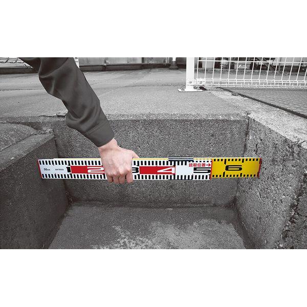 【商品説明】●特長●右基点目盛の専用標尺(60cm)が付属しており、横方向に伸ばして内寸測定ができます。●2本組の標尺にクロス金具がセットになっているので、縦横が同時に測れます。●仕様、規格●材質 本体:アルミ 先端部:ポリプロピレン樹脂 クロス金具部:鉄(クロムめっき)●本体サイズ 600×68×25mm●製品質量 515g