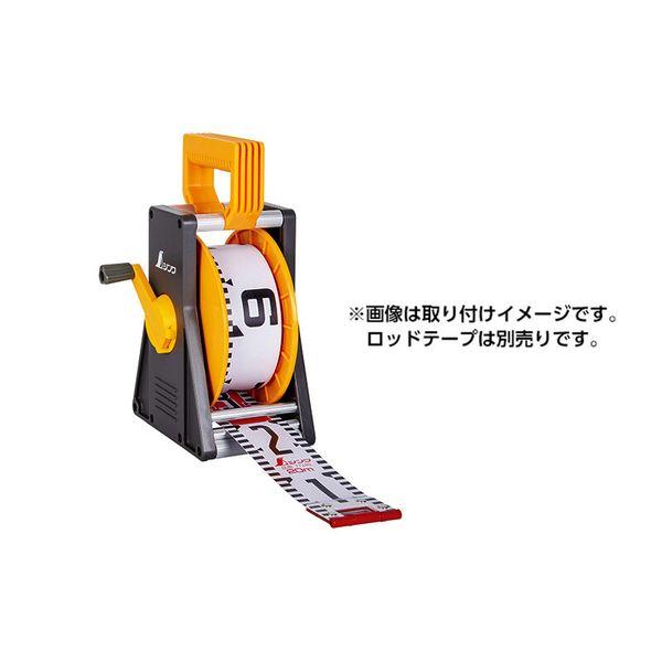 【商品説明】●特長●ロッドテープが収納でき、持ち運びに便利です。●スムーズにテープが巻き取れます。●テープ接続部はワンタッチで着脱できて便利です。●仕様●材質 ハンドル、板面:ABS樹脂 軸棒:アルミ●本体サイズ 284×174×124mm(ハンドルを畳んだ状態)●製品質量 950g