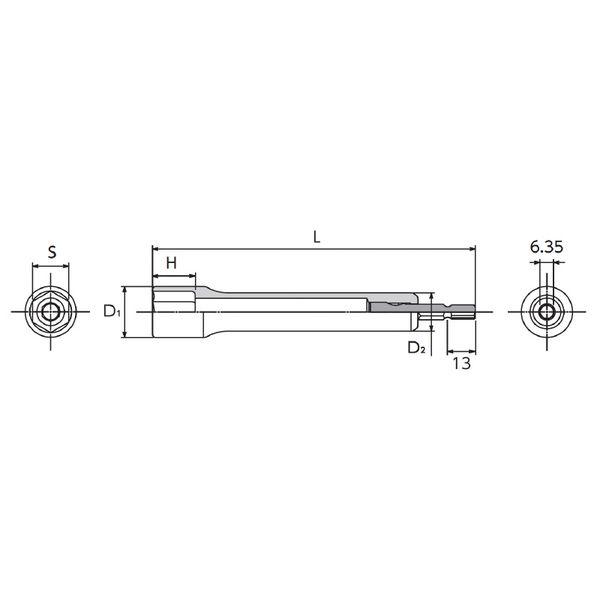 【商品説明】●シャンクサイズ(inch):1/4●口径部:六角タイプ●サイズ(S;mm):17●外径(D1;mm):24●寸法D2(mm):18●寸法H(mm):18.5●全長(L;mm):151●質量(g):156●トーション効果を持たせる独自構造で高耐久を実現。●ビット部に独自の難攻不落機構を採用、破損しても先端部分(ソケット)の落下を防止。●ビットがソケット内部で折れる為、ビットの断片がチャック内部に残らず、インパクトドライバからスムーズに脱着可能。●あらゆる障害物を避けてアクセス可能なロングタイプ。●6.35mmのインパクトドライバに使用できるソケットビット。