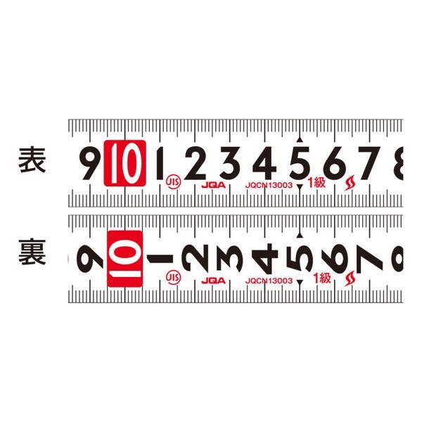 【商品説明】●特長●JIS1級です。●握りやすい手にフィットする形状です。●摩耗に強く、傷付きにくいナイロンコートテープを採用しました。●爪ガード付です。●大型フックハンガーで、落下防止コードの取り付けに便利です。●ショックアブソーバー(衝撃吸収材)付でテープ引き込み時の衝撃を軽減します。●ベルトクリップとストラップ付です。●455mmピッチ表示付です。●0点補正移動爪付です。●両面目盛付です。●仕様●テープ巾 25mm●テープ長さ 5.5m●材質 本体:ABS樹脂 カバー:エラストマー樹脂 テープ:炭素工具鋼(SK)●本体サイズ 72×72×50mm●製品質量 265g