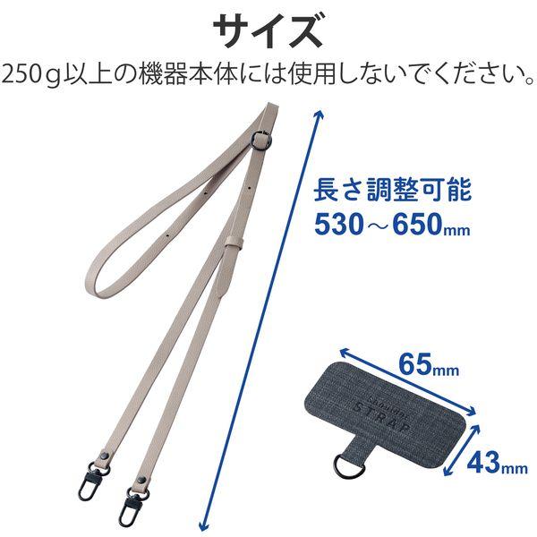 【商品説明】●肩から掛けられ、バッグやポケットから取り出さなくてもすぐにスマートフォンの操作ができるショルダーストラップです。●両手があいて、普段のお出かけはもちろん、お仕事や旅行などのイベント時にも活躍します。●落下、盗難、紛失防止にもなります。●取り外しやすいフックを使用しているので、ストラップの着脱が簡単にできます。●ストラップは調節パーツでお好みの長さにできます。●柔らかく上品なソフトレザー素材を使用していて、スーツやオフィスカジュアルに合わせやすいデザインです。●ケースにストラップホールがなくても、付属のストラップシートをスマートフォンとケースの間に挟むだけで使用でき、取り外しも簡単です。●ケーブル穴1口用とスピーカー穴2口用の2種類のストラップシートが付属しているので、どちらのタイプのケースにも使用できます。●ストラップシートはスマートフォンやケースを傷つけにくい柔らかい素材を使用しています。●ケースにフィットする0.6mmの薄型のストラップシートで簡単に装着できます。