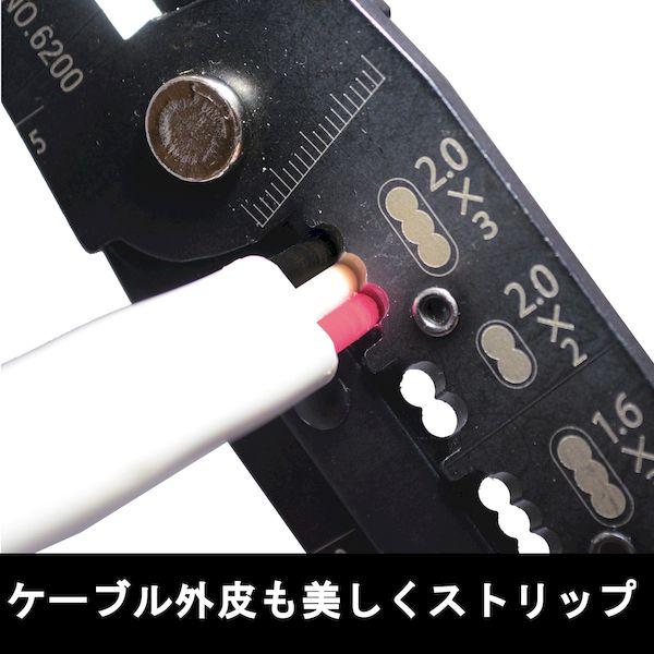 【商品説明】●先端のくわえ部を細長く設計しているため、芯線の「のの字曲げ」加工がしやすくなっております。●芯線被覆もまとめてストリップ可能。3芯を一気にストリップしても、綺麗な仕上がりにできます。●ケーブル外被のストリップ部は芯線形状に合わせた刃形状とガイドで、エコ電線の加工も楽に美しくストリップできます。●本体には、ストリップの目安となる20mm、12cmのスケール付き。●環境にやさしく、手にフィットするエラストマー樹脂をグリップに使用。【商品スペック】●全長(mm):235●重量(g):235●切断能力[VA・VVF線](mm):Φ2.0x3芯●適応電線サイズ[芯線被覆ストリッパ](mm):Φ1.6/Φ2.0●適応電線サイズ[VA線外被ストリッパ](mm):Φ1.6x2芯/Φ1.6x3芯/Φ2.0x2芯/Φ2.0x3芯【用途】●内線・外線工事など電気設備工事でのVA・VVF線の加工作業に最適です。【その他注意事項】●電気の流れている物への切断は、絶対にしないでください。感電の恐れがあります。●本来の目的以外では使用しないでください。●作業時は周りの安全を確かめてご使用ください。●保護メガネ等を着用して作業をしてください。●能力以上の使用はしないでください。ビクター ビクター びくたー bikuta- victor VICTOR 花園 花園工具 ビクトリー ベクター 工具 道具 ツール ペンチ ニッパー プライヤー ストリッパー 皮むき 被覆 剥ぎ 剥ぐ ストリップ VA VVF ケーブル 線 切る 切断 電気 通信 工事 試験 電気工事士 技能 実地 電気工事士試験 ホーザン MCC フジヤ フジ矢 エンジニア