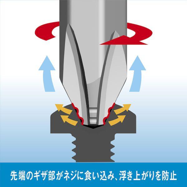 【商品説明】●「粘り」と「硬さ」を極めたダイハード鋼ビット。●刃先のギザ部によって、十字ねじ特有のビットの浮き上がり(カムアウト)を防止。●打ちにくい場所や斜め打ちに、ネジ穴をなめない「ナメないビット」。【商品スペック】●最高硬度:HRC62●刃先区分:(+)●刃先サイズ:(+)2●本体全長(mm):130●先端部タイプ:両頭【用途】●間柱の固定やバリアフリーの手すりの取り付けなど不安定な場所に。【付属品】<<セット内容>>●両頭((+)2×130)×2本