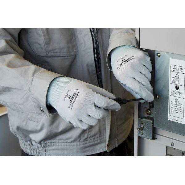 【商品説明】●ニトリルゴムを手のひらにコーティングしているため、耐摩耗性に優れています。●薄くて強度があるため、指先感覚が必要な細かい組立作業にも適しています。●繊維部分は編み目が細かく縫い合わせのない、独自の13ゲージ・シームレス編み手袋です。●裾部分は、ほつれを防ぐオーバーロック加工を施しています。●樹脂部分はニトリルゴム製のため、耐油性に優れています。【商品スペック】●サイズ:M●カラー(本体):グレー●カラー(手首部):グリーン●カラー(裾部):─●内容量:10双●製品寸法(手袋用) - 全長(cm):22●製品寸法(手袋用) - 手のひらまわり(cm):20●製品寸法(手袋用) - 中指長さ(cm):7.7●製品寸法(手袋以外用)(cm):─●単品[片手あたり]重量(g):17.5【用途】─【その他注意事項】●アレルギー反応等により、体質によっては、かゆみ・かぶれ・発疹等をおこすことがあります。異常を感じたら使用を中止し、医師に相談してください。●高濃度の薬品や溶剤(ガソリン・ベンジン類)には、長時間使用しないでください。膨潤、浸透することがあります。●熱いものに触れないでください。火傷するおそれがあります。●刃物や鋭利なものを使用する作業には充分注意してください。●回転体を伴う作業(ボール盤・面取り盤等)には使用しないでください。手が巻き込まれるおそれがあります。●感電のおそれがあるため、電気作業には使用しないでください。●使用後は汚れをよく洗い落とし、陰干ししてください。保管する時には直射日光を避けてください。