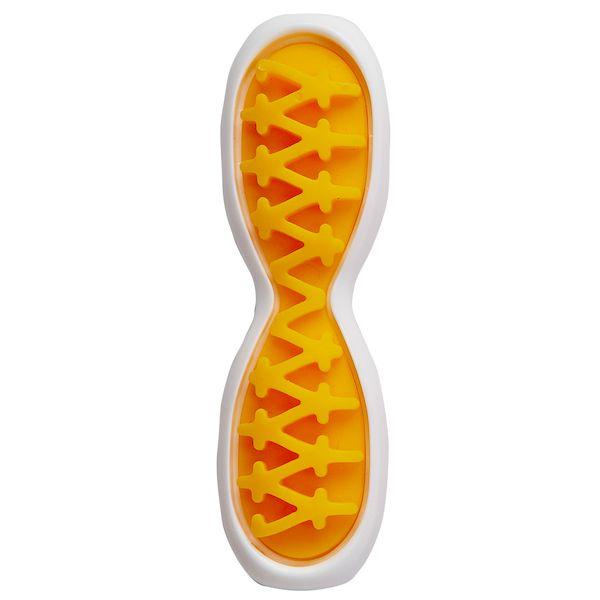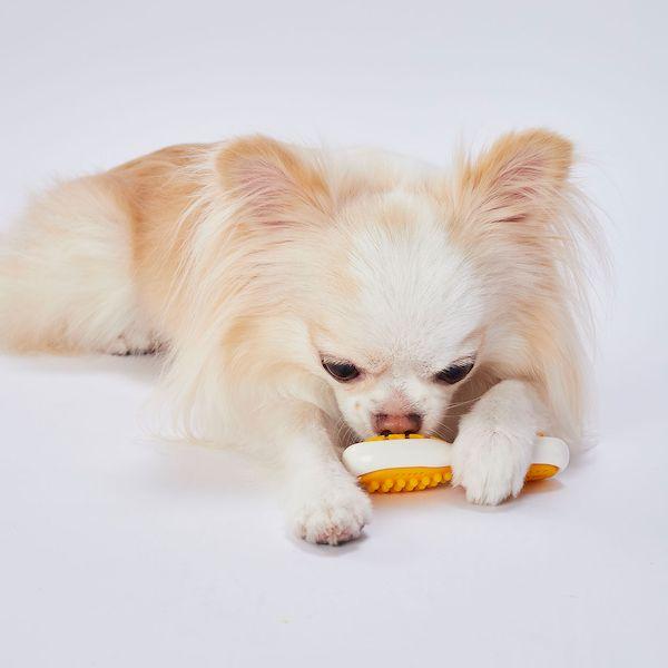 【商品説明】●硬い素材と柔らかい素材の2つの噛みごこちで飽きずに遊べるデンタルトイです。●よく噛むことでブラッシング効果があり、口内の健康維持に役立ちます。●外側は角のない形状なので口当たりがよく、内側の突起で歯の汚れを落とし歯ぐきと舌のマッサージを行います。●材質:ナイロン、エラストマー樹脂●本体サイズ:幅97×高さ24×奥行22mm●適応種:超小型犬●原産国または製造地:日本犬 おもちゃ 玩具 デンタル 歯 はみがき 歯みがき 歯磨き 噛む