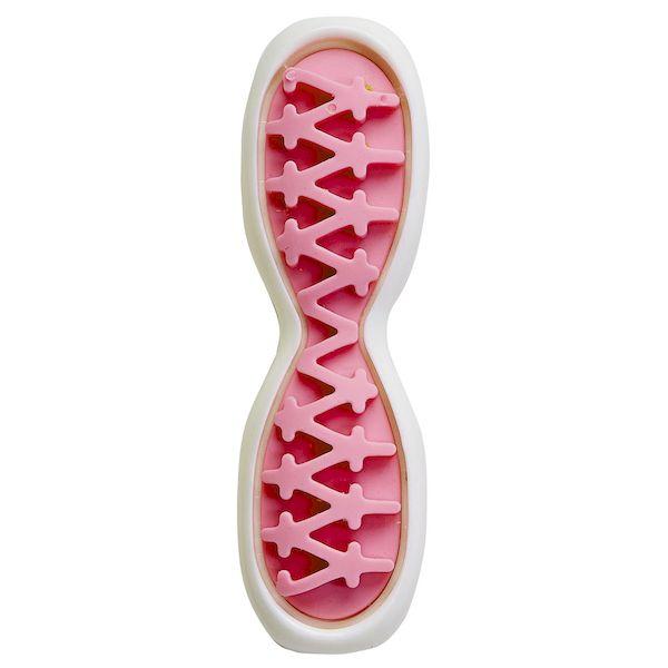 【商品説明】●硬い素材と柔らかい素材の2つの噛みごこちで飽きずに遊べるデンタルトイです。●よく噛むことでブラッシング効果があり、口内の健康維持に役立ちます。●外側は角のない形状なので口当たりがよく、内側の突起で歯の汚れを落とし歯ぐきと舌のマッサージを行います。●材質:ナイロン、エラストマー樹脂●本体サイズ:幅97×高さ24×奥行22mm●適応種:超小型犬●原産国または製造地:日本犬 おもちゃ 玩具 デンタル 歯 はみがき 歯みがき 歯磨き 噛む