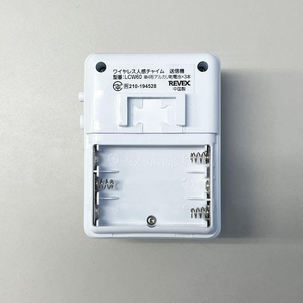 【商品説明】●人感(赤外線)センサーが感知すると、離れた場所でチャイム音でお知らせします。 来客の感知に。家族の出入り、徘徊老人の確認用に。侵入者の感知に。【特徴】●電池式なので配線不要、取り付け簡単●送信機は防雨・防沫形(IP44)なので、屋外の軒下などでも使用できます。●電波の飛距離は屋外見通し最大100m●デジタルIDコードなので混信はありません。●音量調節可能(5段階/最大約83dB)●3つのチャイム音から選曲可能(ピンポン/ピンポンパンポン/エリーゼのために)【ご注意】●本機は、1対1の専用となっております。送信機または受信機のみを増設する事は出来ません(セットで増設する事は出来ます)●XPシリーズ、Xシリーズとの互換性はありません。【製品仕様】「人感センサー送信機」●使用温度範囲:-10℃~+40℃●電源:単4形アルカリ電池×3個(別売)●電波到達距離 屋外見通し最大:100m●寸法:高さ80×幅59×奥行50mm(約)●質量:63g(電池を含まない)●電池寿命:約1年半(10回/1日動作送信、20℃時)●IDコード数:10万通り以上●センサー感知間隔:約8秒間●音の種類:3種類「受信チャイム」●使用温度範囲:-10℃~+40℃●電源:DC4.5V単3アルカリ電池3本(別途ご用意ください)●電池寿命:約6カ月(1日10回受信、気温20℃時)●電源スイッチ:あり●音量調節:5段階、最大約83dB/1m●着信表示LED:チャイム鳴動中に赤LEDが点滅●受信可能距離:屋外見通し最大100m/屋内見通し最大50m●使用エリア:屋内用●本体外形寸法:66(W)×96(H)×33(D)●本体質量:約70g(電池を含まない)【付属品】●送信機取付プレート●木ネジ×1個●両面テープ×1枚