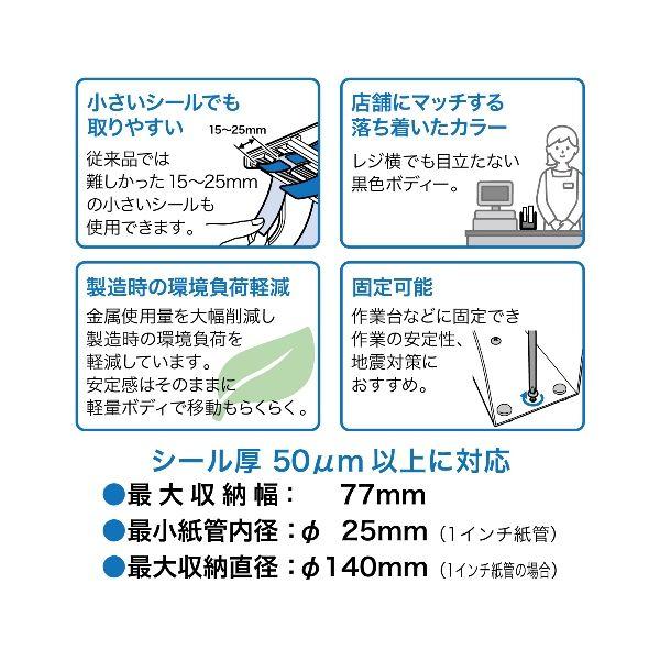 【商品説明】●ラベルのはく離作業が簡単にスピーディに行えます。●厚さ50μm以上のシールが使用できます。●15~25mmの小さいシールも使用可能です。●作業台などに工程でき、作業の安定感、地震対策におすすめです。●最大収納幅:77mm●最小紙管内径:φ25mm●最大収納直径:φ140mm●サイズ:W86XD220XH103mm●重量:725gオープン工業 シールピーラー 店舗用品 ラベル シール ラベル剥離
