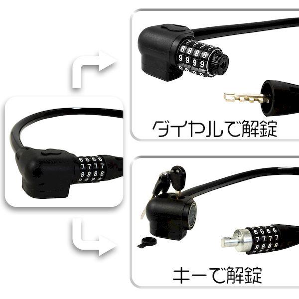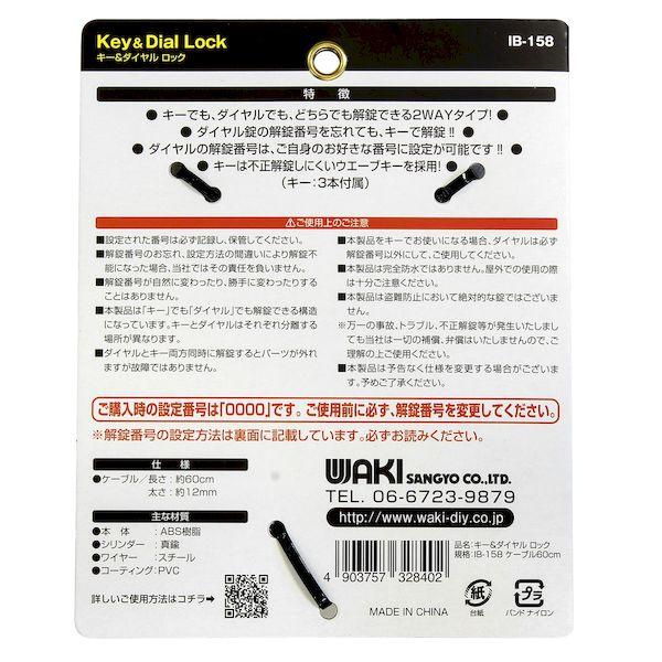 【商品説明】●キーでも、ダイヤルでも、どちらでも解錠できる2WAYタイプです。●ダイヤル錠の解錠番号を忘れても、キーで解錠できます。●ダイヤルの解錠番号は、ご自身のお好きな番号に設定が可能です。●キーは不正解錠しにくいウエーブキーを採用しています。【商品用途】●倉庫、扉の開閉や、自転車等の持ち去り防止に【注意】●ご購入時の設定番号は、「0000」です。ご使用前に必ず、解錠番号を変更してください。●解錠番号の設定方法はパッケージ裏面に記載してあります。必ずお読みください。【商品サイズ】●ケーブル長さ:約60cm●ケーブル太さ:約12mm【材質】●本体/ABS樹脂、シリンダー/真鍮、ワイヤー/スチール、コーティング/PVC【付属品】●キー3本番号錠 盗難防止