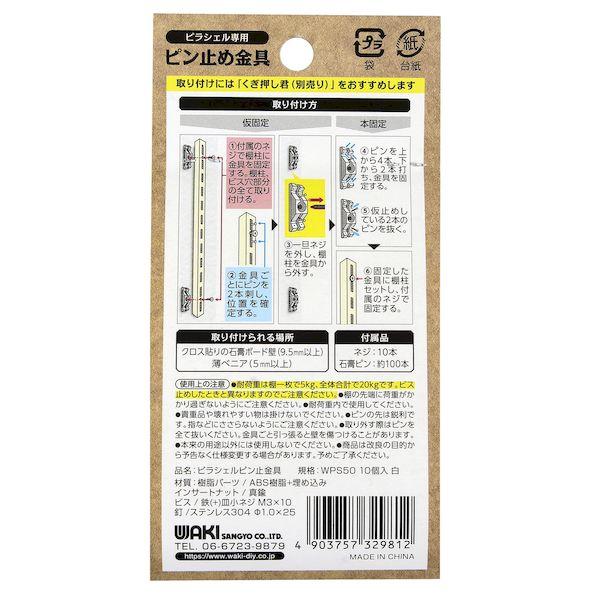 【商品説明】●石膏ボード壁に和気産業の「ピラシェル棚支柱」を取り付けることができます。●付属のピンでパーツを固定し、上から支柱をかぶせるだけで、簡単に取り付けることができます。●間柱や木材の板に設置しなくも、お家の石膏ボードに取り付けることができるので、収納は幅が広がります!【商品用途】●ピラシェル棚支柱を石膏ボードに取り付ける金具です。【注意】●耐荷重は棚1枚で5kg、全体合計で20kgです。●棚の先端に荷重がかかり過ぎないように注意ください。●貴重品や壊れやすい物は掛けないでください。●取り外す際はピンを全て抜いてください。金具ごと引っ張ると壁を傷つけることがあります。【仕様】●ピラシェル棚支柱 白用専用パーツ【材質】●樹脂パーツ/ABS樹脂+埋め込み、インサートナット/真鍮、ビス/鉄(+)皿小ネジ M3×10、釘/ステンレス304 Φ1.0×25【付属品】●ネジ×10本、石膏ピン×約100本ウォールシェルフ 壁棚 壁面収納