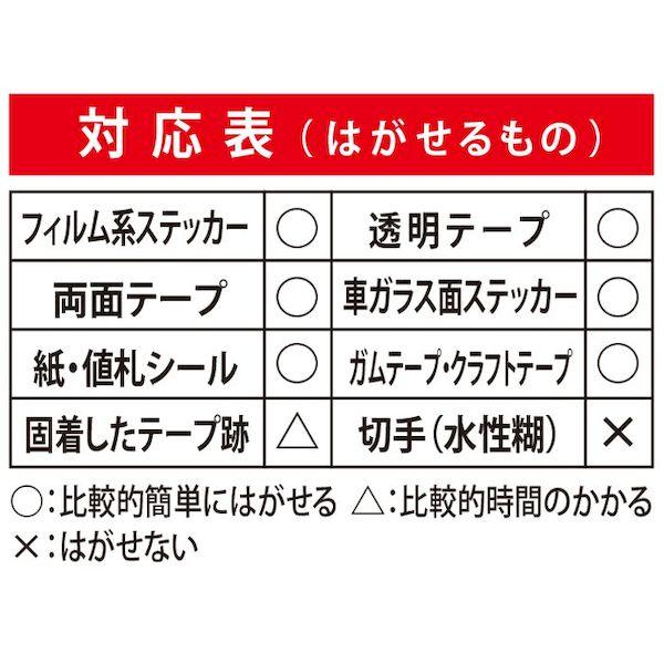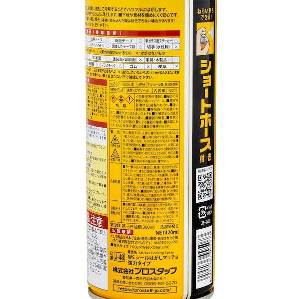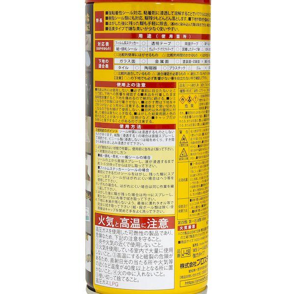 【商品説明】●強粘着シール対応!残った糊もキレイにはがします。●嫌な匂いが少ない低臭タイプ●粘着剤に浸透して溶解することでパワフルにはがします。●樹脂シール類にも対応。糊残りもどんどん落とします。下地や素材を傷めにくく安心です。はがした後に残った糊も手軽に除去。(基材に染み込んだ糊は除去できない場合があります)【商品用途】●ステッカー、透明テープ、両面テープ、ガムテープ、値札・紙シール、テープ跡・糊などの様々なシールに最適です。【注意】●本品を付着したまま長時間放置すると下地を傷めるので絶対に避ける。●はがした結果周囲と色の差が出ることがあります。(日焼けなど)【内容量】●420mL【材質】●アルコール類、石油系溶剤シールはがし のりはがし