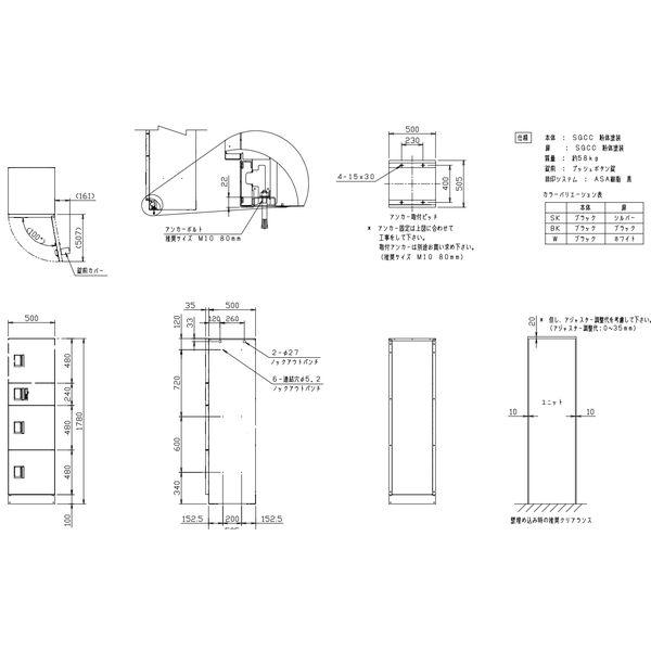 【個人宅配送不可】ナスタ NASTA KS-TL03R-02AN-SK 直送 代引不可 宅配ボックス STANDARD 前入前出 アナログキー 防水タイプ Bユニット 捺印付 シルバー SK KSTL