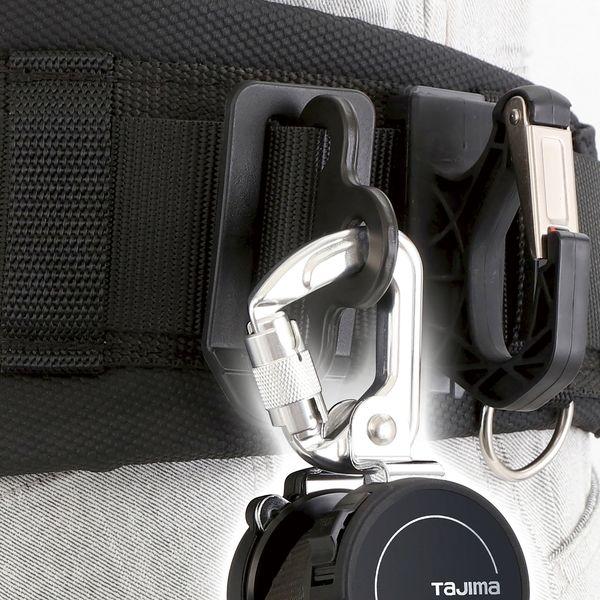 【商品説明】●特徴●接続環が着脱カラビナタイプの胴ベルト用ランヤード・補助ロープを●2丁掛け可能な組合せにするA環●50mm幅ベルト用●仕様、規格●カラ―:ブラック●ベルト幅:50mm用