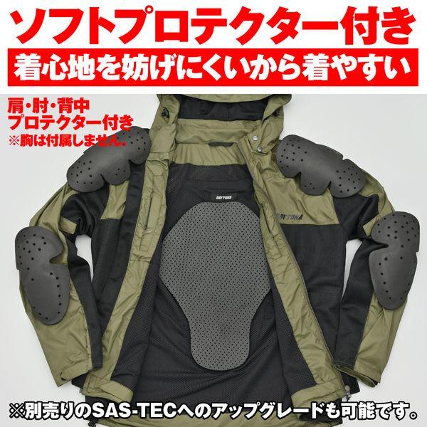 【商品説明】シンプルなマウンテンパーカースタイルのメッシュジャケット。軽くしなやかなテキスタイル生地と通気性の高いメッシュ生地を組み合わせたライトな着心地が夏のライディ ングに最適。付属のプロテクターはSAS-TECへのアップグレー ドが可能で、胸部には別売のSAS-TEC胸部プロテクター(セパレートタイプCP-2(品番:94856)、CP-7(品番:32506)、CP-9(品番:26377))が装着可能。フード脱着可能。●シーズン:春夏●肩・ひじ・背中にソフトプロテクター装備 (胸部はプロテクターポケットのみ)●プロテクターはSAS-TEC(サステック)にアップグレード可能●フード脱着可能●素材: ナイロン、ポリエステル※ 身長、体重は目安であり、体型によりあてはまらない場合があります。※ バスト、ウエストは当社独自の計測方法に基づく、寸法となります。※ バスト、ウエストは製品の下に着るウエアの上から計測ください。※ 実際の製品は個体差が生じる場合があります。サイズは目安としてご参考ください。※ 胸部プロテクターは付属していません。●納品日より1年間。納品書必須。日本国内使用に限り保証いたします。