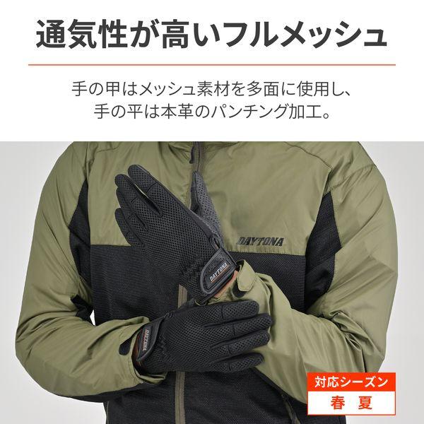 【商品説明】フルメッシュ+本革で通気性と耐久性を両立させた春夏グローブ。手の甲側は通気性とストレッチ性に優れたメッシュ素材、手の平側は全面パンチング加工を施した本革を採用。指股には通気性に優れるストレッチ素材を採用することで、高いフィット感、通気性と安全性を両立。手の平に本革を採用することにより、転倒やグリップによる摩耗を防ぎ耐久性を確保しています。真夏でも快適にライディングできます。●シーズン:春夏●通気性の高いメッシュ素材を多面に使用●ストレッチ性の優れたメッシュ生地で握りやすい●転倒やグリップとの摩耗を考慮して手の平に本革採用●タッチパネル対応※ 手とグローブの密着度によりタッチパネルの感度は異なります。●納品日より1年間。納品書必須。日本国内使用に限り保証いたします。グローブ 手の平 本革 ヤギ革 春夏 タッチパネル対応