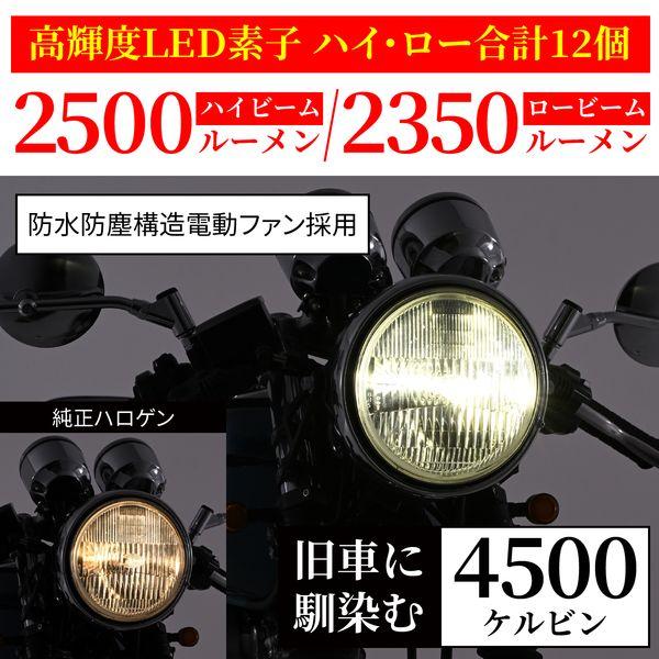 【商品説明】ハロゲンバルブからLEDライトへ手軽にアップグレード。Hi/Low両面合計で12個のLED素子を採用することで、Hiビーム2500ルーメン/Lowビーム2350ルーメンを実現。信頼のルミレッズ社製高輝度LED素子を採用し、バルブのさらなる小型化と光量アップを両立。ハロゲンバルブ約半分の電力で約3倍の明るさを発揮し、従来品のプレシャス・レイ Xに比べ、更なる小型化と光量アップも達成。多層冷却ヒートシンクと高性能ファンで効率的に放熱することで長寿命も実現しました。寸法はハロゲンバルブ同等なので、装着は純正バルブと差し替えるだけで、簡単に装着できます。旧車になじむ4500ケルビンです。【安心の車検対応】