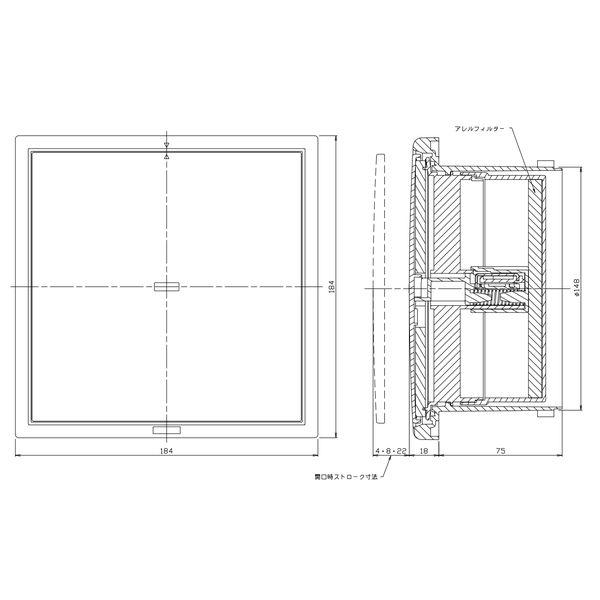 【商品説明】●KS-8641PRFK3-SG 花粉除去用フィルター付 後継品●特徴:前面パネル中央を押すだけで3段階の給気量調整、密閉ができるプッシュ開閉方式です。高層住宅特有の強風の吹込により発生する不快な風切音を解消した密閉タイプです。(前面パネル閉時)アレルフィルター付(20μm花粉約90%除去・花粉アレルゲンを約90%抑制)は花粉や粉塵・ほこりの侵入を大幅に減少させます。防虫網付(ABS樹脂成形網)。前面パネルが取り外せますので、フィルター等、内部の清掃が容