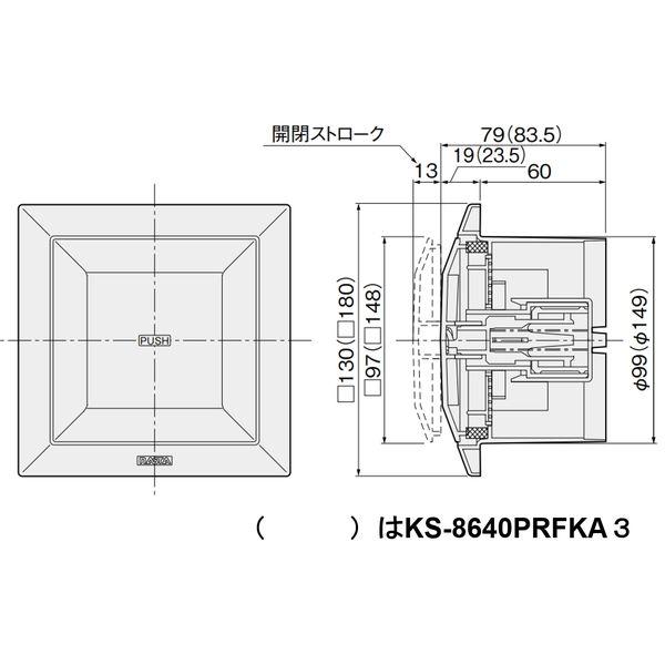 【商品説明】●KS-8840PRFK3-SG 花粉除去用フィルター付 後継品●特徴:断熱材・シール材が付いた断熱密閉タイプです。プッシュ部分を押すだけで、開閉自在のワンプッシュ方式です。アレルフィルター付、スギ花粉(20μm)を約90%除去・花粉アレルゲンを約90%抑制!防虫網付。(ABS樹脂成形網)前面パネルが取り外せますので、フィルター・防虫網の清掃が容易です。●材質:ABS樹脂●適合パイプ:SU100(内径Φ100)●色:シルバ