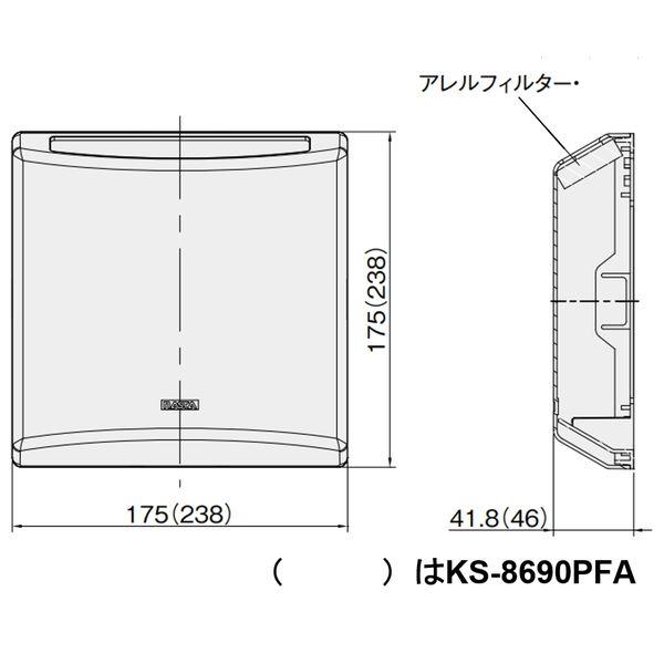 【商品説明】●KS-8890PF-SG 花粉除去用フィルター付 後継品●特徴:今、お使いの屋内換気口にかぶせるように取り付けるだけで、外からのほこりや花粉などをカットします。アレルフィルター付、スギ花粉(20μm)を約90%除去・花粉アレルゲンを約90%抑制。アレルフィルターの交換は、カバーを外して内側にあるフィルターをはがすだけです。台風などの強風の時には、カバーを外して逆さに取り付けるだけで吹き込みを抑えることができる開閉機能付です。吸音断熱材は断熱性向