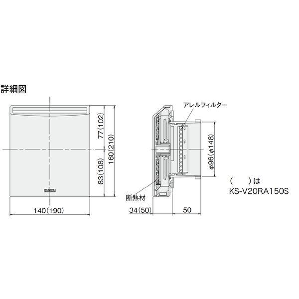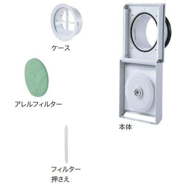 【商品説明】●KS-V20RS 花粉除去用フィルター付 後継品●特徴:アレルフィルター付。スギ花粉(20μm)を約90%除去・花粉アレルゲンを約90%抑制!花粉や粉塵・ほこりの侵入を大幅に減少させます。風量調整機構付。●材質:ABS樹脂●適合パイプ:SU100(内径Φ100)●色:シルバーグレー●仕様:アレルフィルター付●通気量(m3/h):(9.8Pa時)メモリ1、8.0/メモリ2、9.3●付属品:なべタッピンねじ(SUS)呼び3.5×30