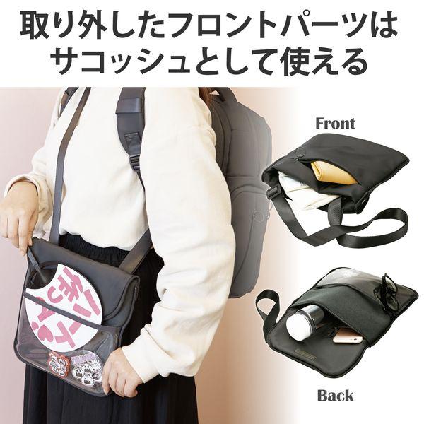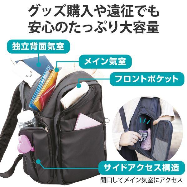 【商品説明】●あなただけの推し活を応援する、推しごとバックパックです。●日常のお出かけの際にも街に溶け込み、会場付近までの移動中にも活躍する「擬態モード」と、ぬいぐるみやバッジをアピールできる「推し活モード」を切り替えられます。●普段は隠せる大きな透明窓で、大好きな推しをバッチリアピールできます。●イベント時のグッズ購入はもちろん、ちょっとした遠征でも安心の、たっぷり大容量です。●面ファスナーでしっかり固定できる、着脱式のディスプレイ用仕切りが付属しています。●ディスプレイ用仕切りには、ストラップや缶バッジを取り付けやすい粗目のメッシュ生地を採用しています。●ディスプレイ用仕切りを折りたたんで固定することで、簡易2気室構造にすることができ、ぬいぐるみなど厚みのあるグッズの配置にも対応します。●ディスプレイ用仕切りを取り外すことで、メイン気室の空間全体を見せることが可能。自由に内部を装飾できます。●フロントパーツの着脱により、「擬態モード」と「推し活モード」を切り替えることができます。●取り外したフロントパーツにはショルダーベルトが付いているので、サコッシュとして使えます。●サコッシュには便利な4つの小物ポケットがあり、イベント会場で荷物が多い際もお財布などをサッと出し入れできます。●ノートパソコンやタブレットなど、作業・鑑賞に便利なデジタル機器を整理して収納できる、独立したガジェット収納気室を備えています。●バッグを下ろさずに汗拭き用のタオルやドリンクなどを素早く取り出せる、ファスナー付きのサイドポケットを両側面に採用しています。●サイドポケットのファスナーを大きく開くことで、バッグを背負ったままメイン気室の荷物を出し入れできます。グッズ交換などの際もスムーズです。●背面には、折り畳み式の椅子や付属のレインカバーの収納に最適な、大型のスリーブポケットを備えています。●背面のキャリーベルトによって、キャリーケースにバッグを固定して使用可能。遠征の際も使いやすい設計です。●ショルダーベルト部に、ICカードケースやカラビナの取付が可能なリングテープと、リング構造付きのアジャスターを備えています。●推しカラーに合わせて、自分の好きな色を選べる6色展開です。●本体の表生地に、撥水加工を施しています。●専用のレインカバーが付属しています。大切な推しを急な雨から守れます。※いずれも、内部への水の浸入を完全に防ぐものではありません。●14.0インチまでのノートパソコンを収納可能です。●自社環境認定基準を1つ以上満たし、『THINK ECOLOGY』マークを表示した製品です。●環境保全に取り組み、製品の包装容器が紙・ダンボール・ポリ袋のみで構成されている製品です。