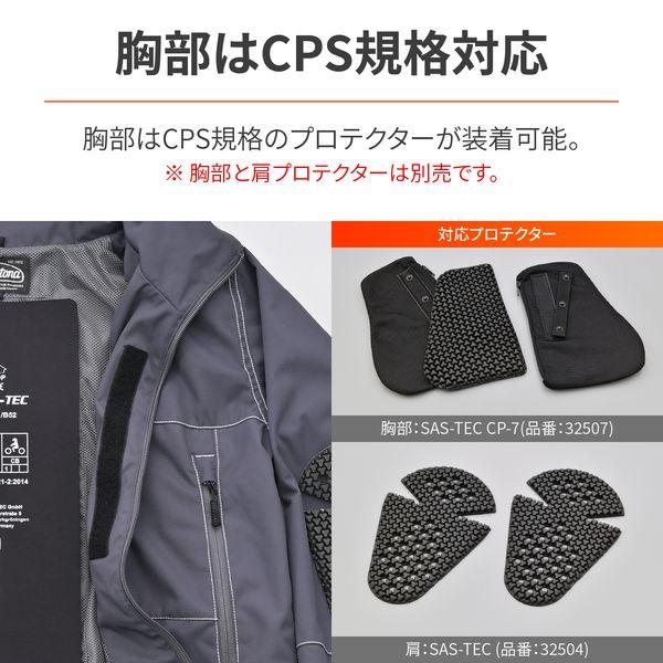 ひじ、背中のプロテクターは、SAS-TECのTRIPLEFLEXタイプを標準装備。