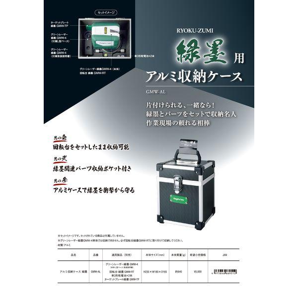 【商品説明】●注意 グリーンレーザー緑墨GMW-4単体では収納出来ません、必ず回転台GMW-RTに取り付けて収納ください●緑墨用専用アルミ収納ケース●回転台をセットしたまま収納可能●緑墨関連パーツ収納ポケット付き●アルミケースで緑墨を衝撃から守る●仕様、規格●サイズ H235×W180×D165●本体重量 約640g●適用製品(別売り) グリーンレーザーGMW-4 回転台GMW-RT ターゲットプレートGMW-TP
