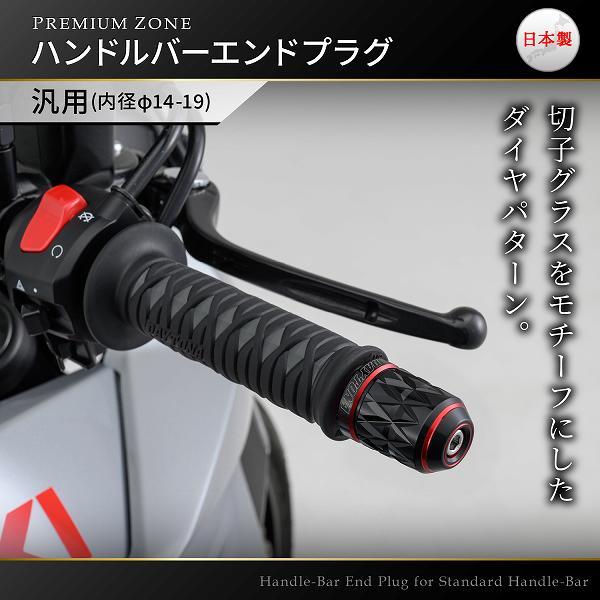 【商品説明】「創」と「麗」を極めた逸品PREMIUM ZONEシリーズのバーエンド。アルミの無垢素材から繊細で丁寧な加工で削り出し、2色の色彩がきわだつ優美なデュアルアルマイト仕上げ。こだわりの日本製。カスタムの定番でもあるダイヤ形状を、工芸品「江戸切子」をモチーフに表現したKIRIKO。中空ハンドル 内径φ14-19ハンドルに対応。一部のSUZUKI車や市販品に多い中空パイプハンドル、エンド貫通タイプのグリップに対応します。 ●中空ハンドル 内径φ14-19ハンドルに対応 ●一部のSUZUKI車や市販品に多い中空パイプハンドル、エンド貫通タイプのグリップに対応 ●アルミ削り出しで2色のコントラストが際立つデュアルアルマイト仕上げ ※純正ハンドルでエンド部にネジが溶接されているタイプには取り付けできません。 ※本体はアルミ製です。メーカー別ハンドルに対応したアタッチメントはスチール製黒塗装仕上げです。 ※ハンドル最大幅が変更となります。車種によっては記載変更が必要です。 【デイトナ社確認車両】GB350/S(21-22)、ホーネット250(96ー01)、CB125R(18ー22)、ADV160(23)、ライブDIO-ZX(94ー98)、LIVE DIO-ZX(00ー02)シグナスグリファス(22)、XFORCE(22)、JOG125(22)GSX1400(02-05)、KATANA(19-21)、GSX-S1000/F(16-20)、GSX-R1000(09)、GSX-S750(18-21)、SV650/X(16-21)、スカイウェイブ650LX(11)、V-STROM650(17)、GSX250R(17-22)、GSR250/S/F(12-17)、GSR400(06-10)、グラディウス400(09-12)、バーグマン400(18)、グラストラッカー(09ー14)、V-STROM250(17)※ナックルカバーの取り外しが必要、ジクサー250/SF250(20-22)、VanVan200(02ー16)、ジクサー150(17-22)、GSX-S125(18ー21)
