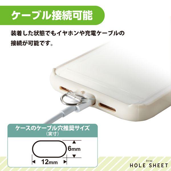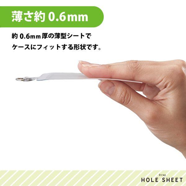 【商品説明】●お気に入りのカードを入れられる、1口タイプのストラップホールシートです。●アニメや漫画、アイドルのトレカなど、54×86mmまでのカードを入れられます。自分だけのスマホケースにカスタマイズして持ち歩けます。●装着するとしっかりと固定されるので、スマホケース内でのシートのズレや移動、それによる端末への傷付きを防ぐことができます。●お使いのケースにストラップホールがなくても、ケーブル穴に通すだけで使用できます。●簡単に取り外しができるので、ケースを変えても繰り返し使用が可能です。●装着した状態でもイヤホンや充電ケーブルの接続が可能です。●5インチまでのスマートフォンに対応したケースに使用できます。※スマートフォン本体やケースの種類、入れるカードの厚みによっては、ケースが外れやすくなる恐れがあります。●約0.6mm厚の薄型シートでケースにフィットする形状です。※ストラップホールは直径約6mmです。お持ちのストラップの取り付け部品サイズをご確認の上、ご購入ください。※耐荷重は約2.5Kgまでです。また、250g以上の機器本体には使用しないでください。●当社製品のスマホショルダーストラップやハンドストラップなど、お好みのストラップとあわせてお使いいただけます。●ケースの種類は、ハイブリッドケース、ソフトケースをご使用ください(ケース背面が硬い素材のものを推奨します)。シリコン製のケースには使用しないでください。●ケースは、ケーブル穴がケース底面の中央にあるものが推奨です。ケーブル穴部分が大きく開口しているケースでの使用は推奨しません。●ストラップシートがちぎれるなどの破損の原因になるため、ケーブル穴の縁が鋭かったり、突起があったりする状態のケースは使用しないでください。●バッグやポケットなどからスマホを取り出す際に、ストラップを持って強く引っ張ったり、ねじったりすると、ストラップシートに大きな負荷がかかりちぎれてしまう恐れがあります。取り出す際はまっすぐ取り出してください。●自社環境認定基準を1つ以上満たし、『THINK ECOLOGY』マークを表示した製品です。●環境保全に取り組み、製品の包装容器が紙・ダンボール・ポリ袋のみで構成されている製品です。