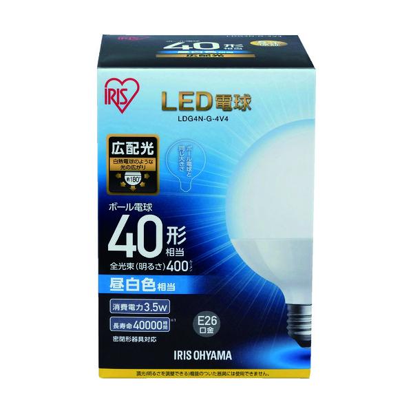 【商品説明】【特長】●インテリア性が高いので、リビングやダイニング・トイレ・洗面所などさまざまな場所でご使用いただけるボール電球です。●口金サイズがE26口金なので、照明器具を替えることなくご使用いただけます。●密閉形器具にご使用可能です。【仕様】●明るさ(lm):400●光源色:昼白色相当●外径(mm):95●全長(mm):127●消費電力(W):3.5●口金:E26●相当電球(W形):40●定格寿命(時間):40000●色温度(K):5000●標準消費電力料金:0.09円/h●演色性:80●電源(V):100●配光角度:180°【仕様2】●電源:AC100V●定格寿命:40000時間●配光角度:180°【注意】●断熱材施工器具にはご使用できません。