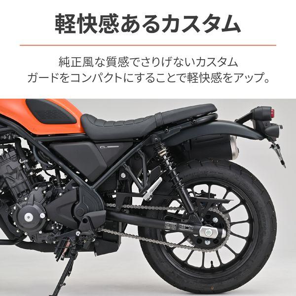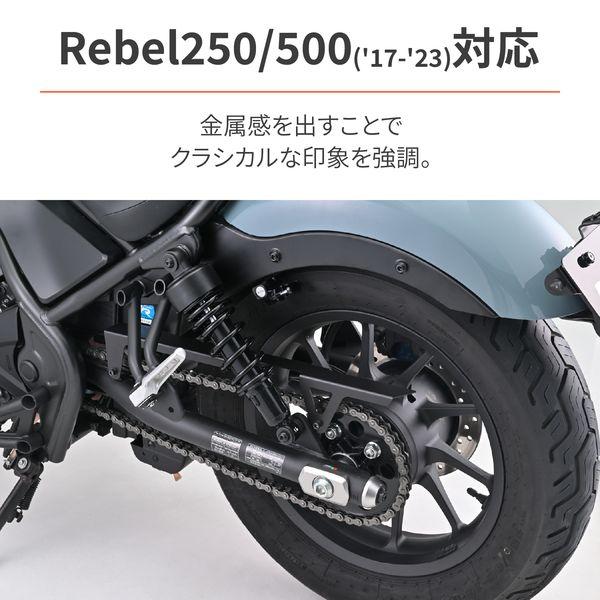 【商品説明】軽快感のある見た目でスッキリ。純正と比較しコンパクトにすることで軽快感をUP。金属感を出すことで、クラシカルな印象を強調。純正風な質感でさりげないカスタムを楽しめるマットブラック仕上げ。 ●適合車種:Rebel250(17-23) [8BK,2BK-MC49]、Rebel500(17-23) [8BL,2BL-PC60]、CL250(23) [8BK-MC57]、CL500(23) [8BL-PC68]●純正と比較しコンパクトにすることで軽快感をUP●金属感を出すことで、クラシカルな印象を強調●デイトナ製ローダウンリアショックとの同時装着可能●スチール製マットブラック塗装※ チェーンを覆う面積が少なくなることで泥や汚れの飛散量が多くなります。