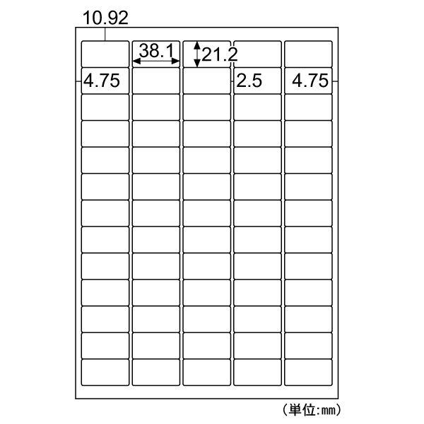 【商品説明】●物流・商品ラベルに最適!●再利用したいものや一時的に貼りたいものに便利です。●各種プリンタで印刷可能です。(レーザ・インクジェット・コピー機)●入数:30シート●面付:65●ラベルサイズ:38.1×21.2 mm●ラベルのみの厚さ:0.10mm●坪量:179g/m2程度