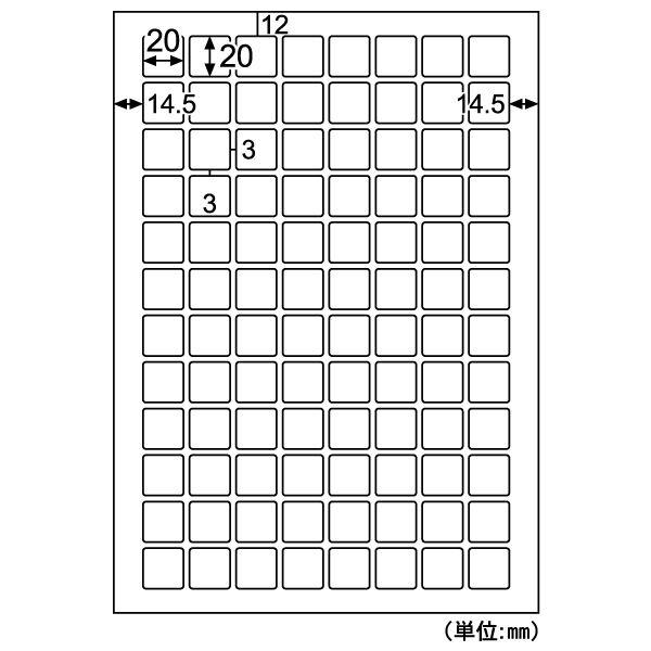 【商品説明】●物流・商品ラベルに最適!●再利用したいものや一時的に貼りたいものに便利です。●各種プリンタで印刷可能です。(レーザ・インクジェット・コピー機)●入数:100シート●面付:96●ラベルサイズ:20×20 mm●ラベルのみの厚さ:0.10mm●坪量:179g/m2程度